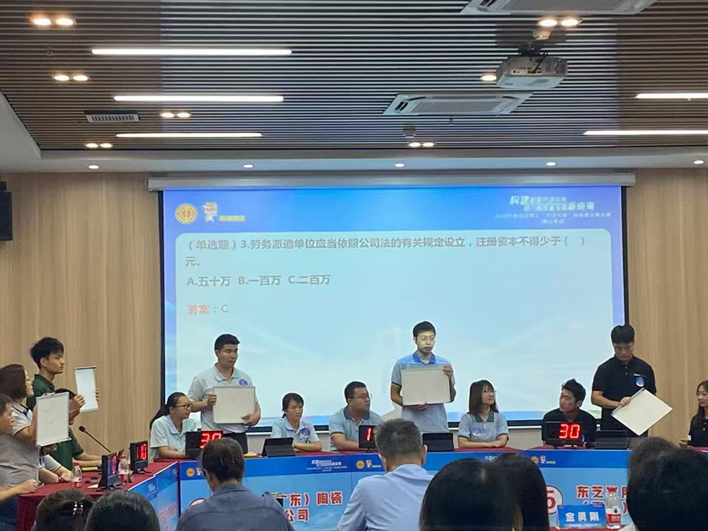 本次擂台赛以“构建和谐劳动关系 共筑南海发展新篇章”为主题,覆盖南海区7个镇街,面向全区企业职工开展,分为镇街预选赛、区级决赛两个阶段,吸引多支企业职工代表队参赛,累计参赛人数达数百人,涵盖制造业、服务业等多个行业领域的一线职工。赛事设置必答题、个人赛、风险题、抢答题四大核心环节,题型丰富、针对性极强,题目聚焦习近平法治思想、宪法、民法典、工会法、安全生产法、劳动合同法等核心内容,同时融入反诈防诈、社会保险、劳动权益保障等与职工工作生活密切相关的实用知识,全面检验职工的法治知识储备与实操应用能力。