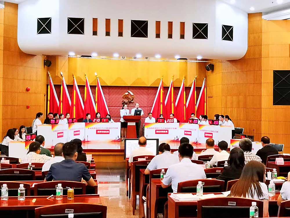 本次竞赛覆盖广东省商务厅机关各科室、各地市商务局及所属相关单位,参赛人员均为各单位选拔出的优秀干部职工,共组成多支代表队同台竞技,无需经过复杂初赛筛选,直接开展现场集中比拼,确保赛事高效有序。赛事紧密围绕党的十九大精神核心内容,设置必答题、抢答题、风险题和终极对决四大核心环节,内容涵盖党的十九大报告、新修订《党章》《宪法》、习近平新时代中国特色社会主义思想,以及商务领域相关政策法规、业务规范等,兼顾理论储备与实践应用,全方位检验参赛人员对十九大精神的理解掌握程度和理论联系实际的能力,切实把学习成果转化为推动商务工作的实际行动。